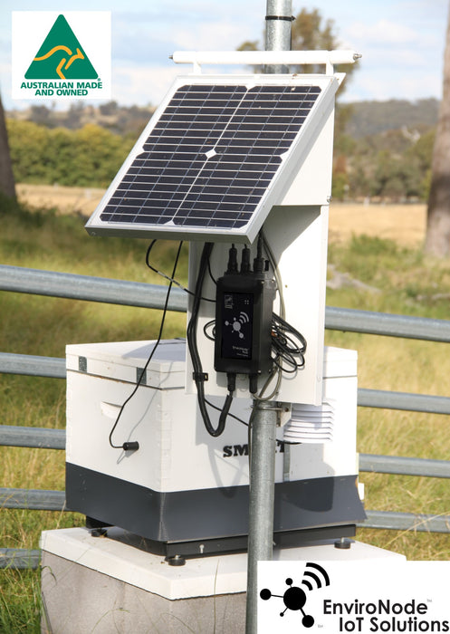 Precise monitoring via Envirodash and local logging of bee hive weight and internal and external climate. Local Cat-M1 communication. Includes 60kg weigh scale and 20W solar panel. Excludes bee box. Optionally add other sensors and gateway function.