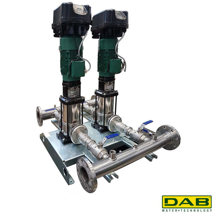 Pump ready to connect to on farm WiFi. 4G/5G accessible with optional DAB RUT950. Cloud platform DAB D CONNECT. Package includes two pumps, suction and discharge manifold, common baseplate, pressure vessel, variable frequency drive and subscription until June 2025 *other size units available on request